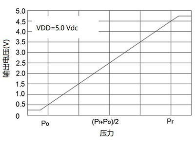 | أوت=أ×ف ب انتباه: OUT هو جهد الخرج التناظري، ويقاس بالفولت؛ P هي قيمة الضغط، الضغط المطلق، بـ kPa؛ انظر الجدول أدناه لمعرفة أ وب. |